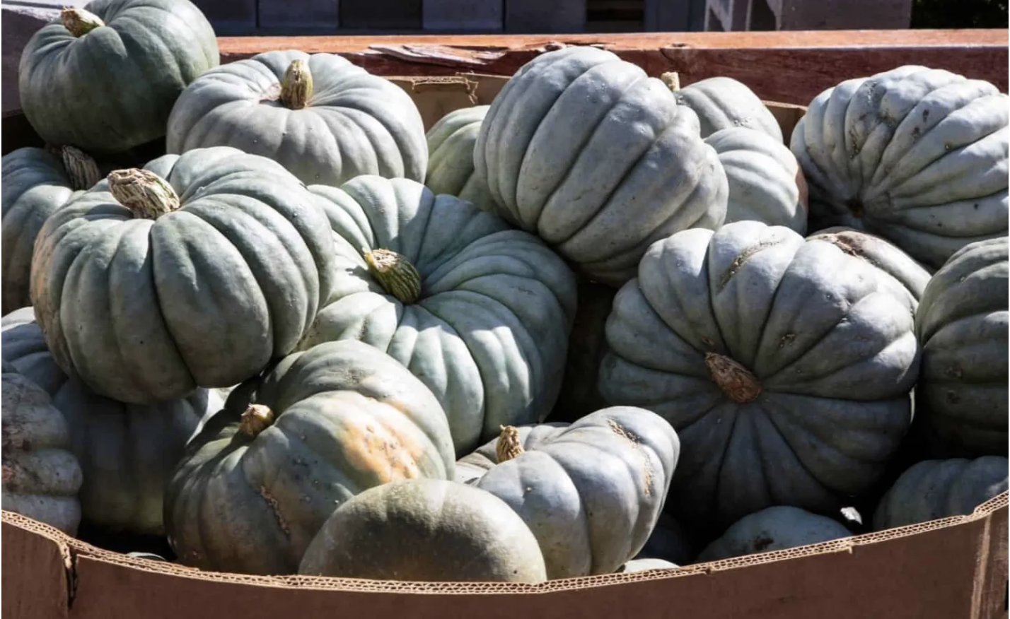 This is a picture from an 2024 harvest. Enjoy! Link: https://homefortheharvest.com/blue-pumpkins/